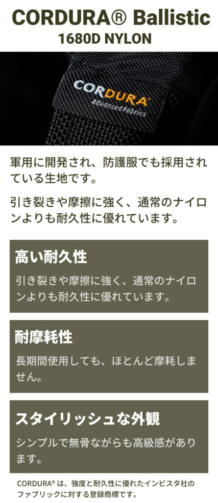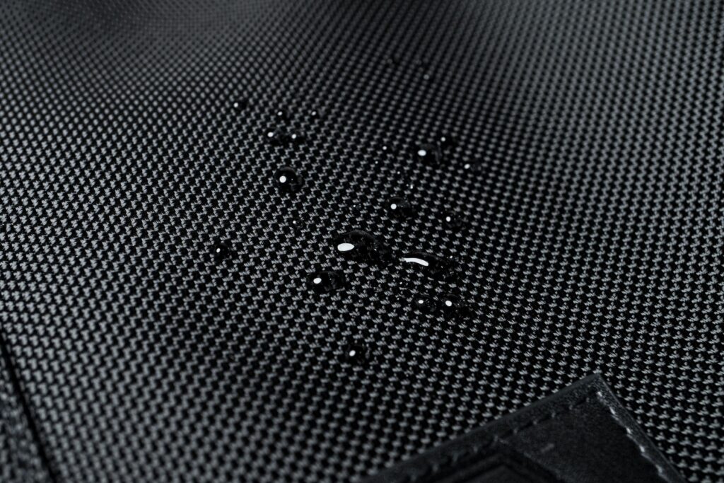 生地表面は撥水加工済み。雨や汚れから荷物を守ります。