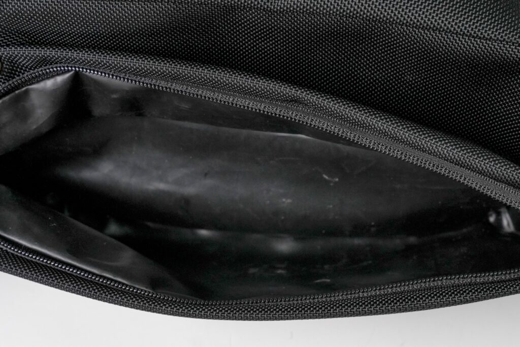 フロントポケットの裏生地は耐水性の素材を採用しました。