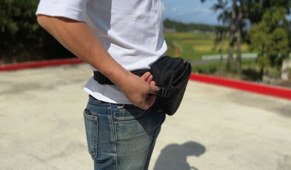 ベルトの調整でウエストバッグをしっかりと密着することで、体の負担を軽減し快適になります。