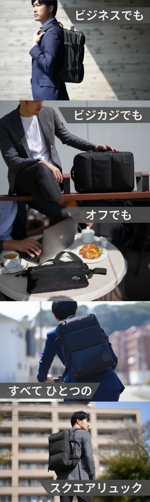 ビジネスシーンでは、ブリーフケース(書類を入れる角型の鞄)に変身!