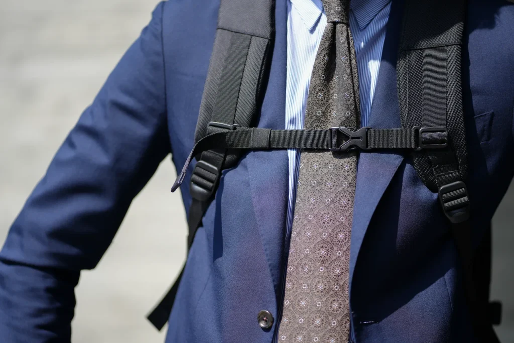 自転車通勤時には、チェストベルトを締めることでブレを軽減します。