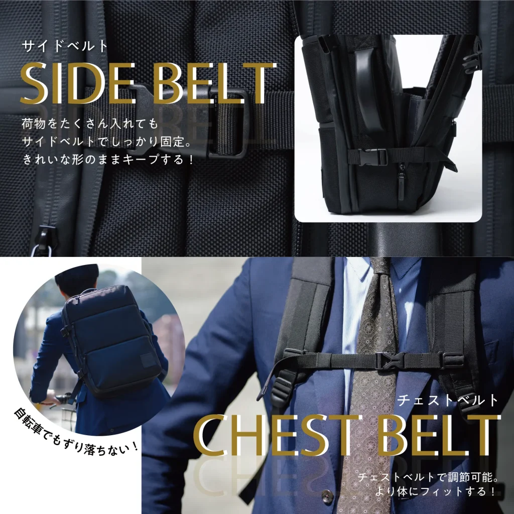 4本のサイドベルトが型くずれを防止します。少ない荷物でも、多い荷物でもリュックの形を綺麗にキープ。