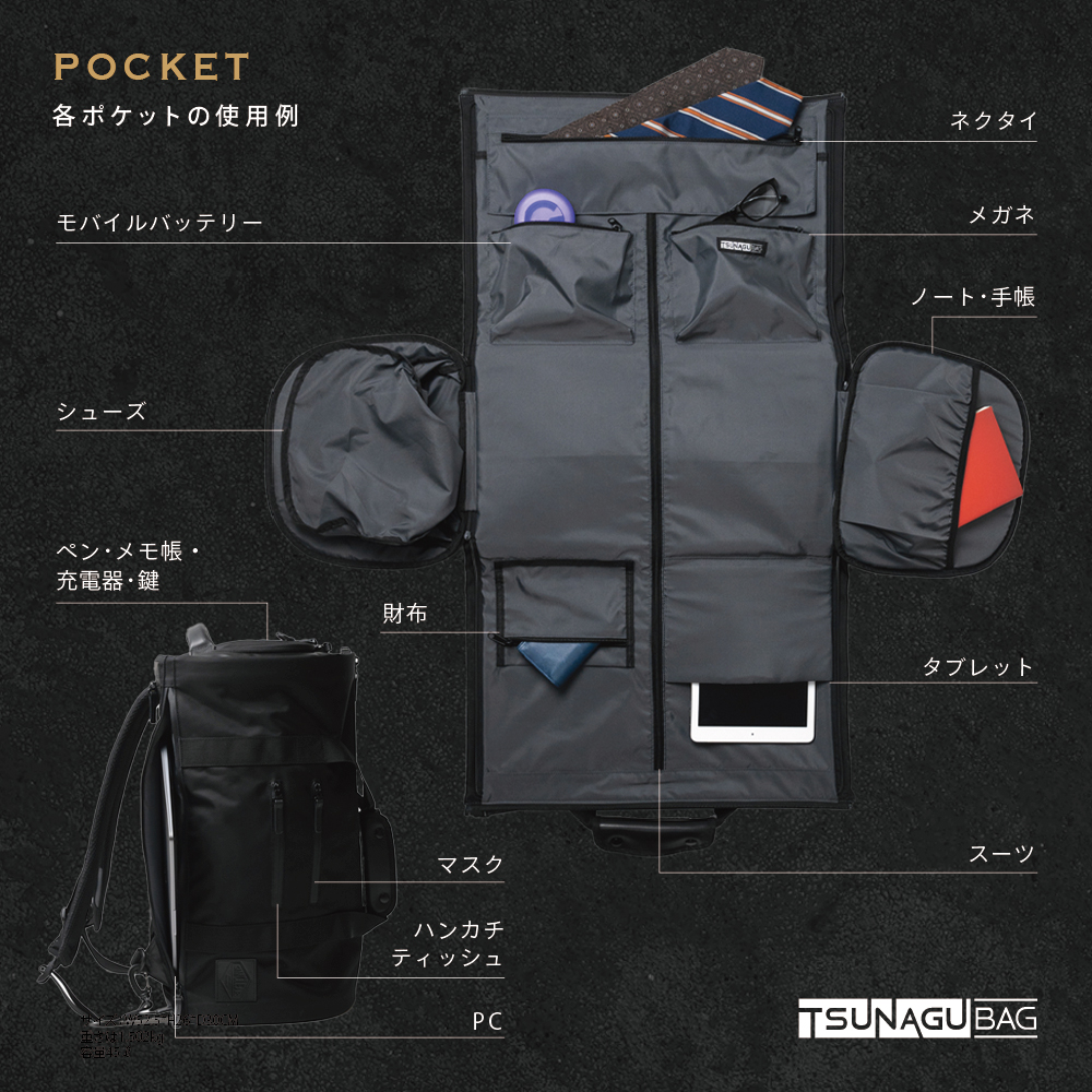 あらゆるシーンで活躍する TSUNAGU BAG TRAVELLER