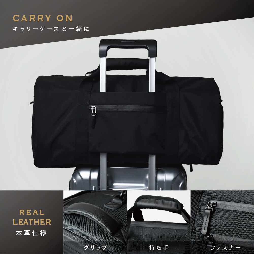 ボストンバッグとしての利用時にはファスナーの中に隠してスマートに持ち運んでください。
