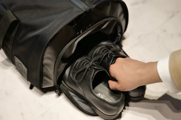 独立した収納スペースにしたので、靴裏の汚れが他の荷物に影響せず、カバンの中身を清潔に保てます。