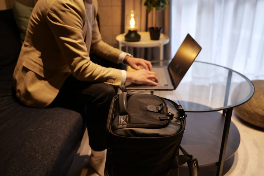 例えば、出張時の空港や商談先で、ショルダースタイルからリュックスタイルへ切り替えることで、移動中を快適に過ごせます。