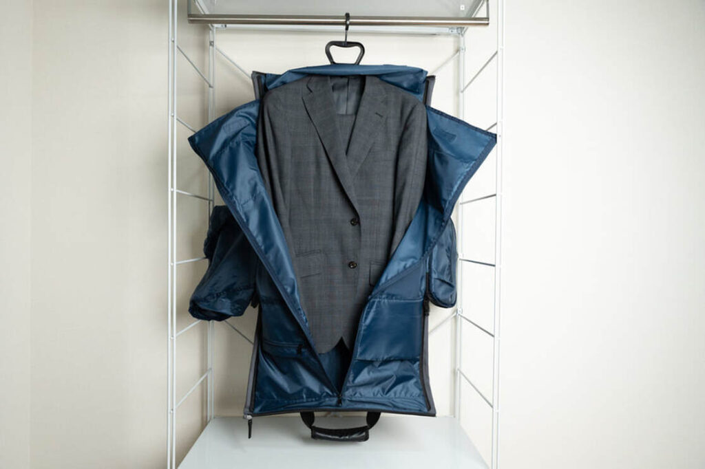 180度フルオープンのガーメントバッグなので、スーツの出し入れがカンタンです。